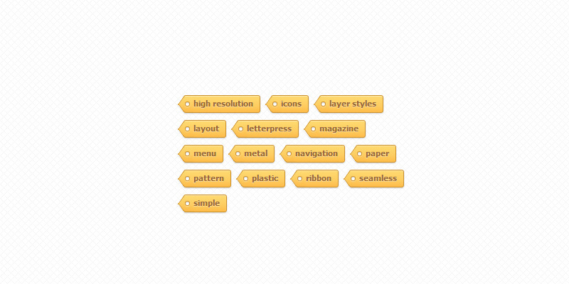 Everything in here is created by using pure CSS. The tags are done using the :after and :before pseudo elements and using basic CSS3 properties like linear-gradient, box-shadow, etc. Also, because they are created purely in CSS, the circles or holes inside the tags are not transparent and can’t be made that way.