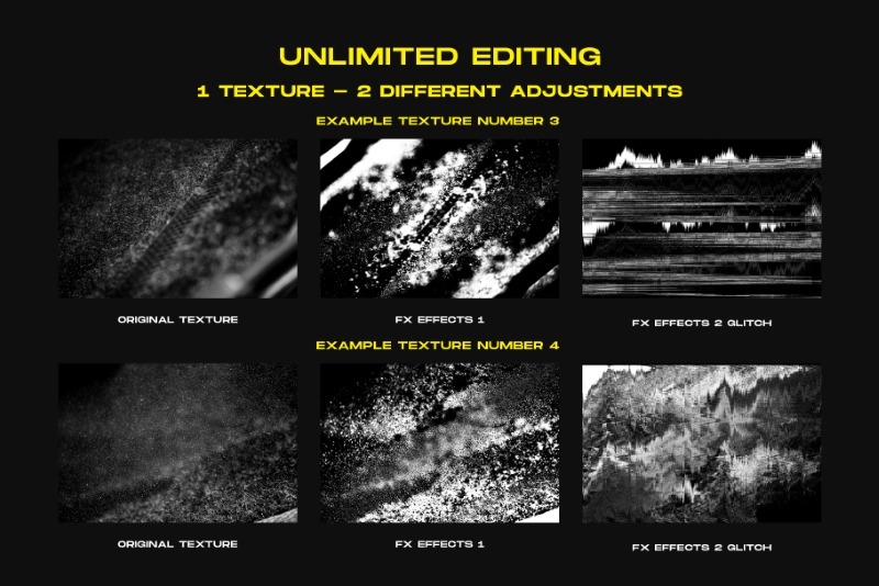 This huge collection features 750+ high resolution backgrounds, textures & images with a variety of neat, unique effects like grunge, dust, glitch/distortions, cracks, distresses, plastic wraps and many others, so you can add background effects to your photos and mockups, and create awesome textured imagery without having to start creating these effects from scratch