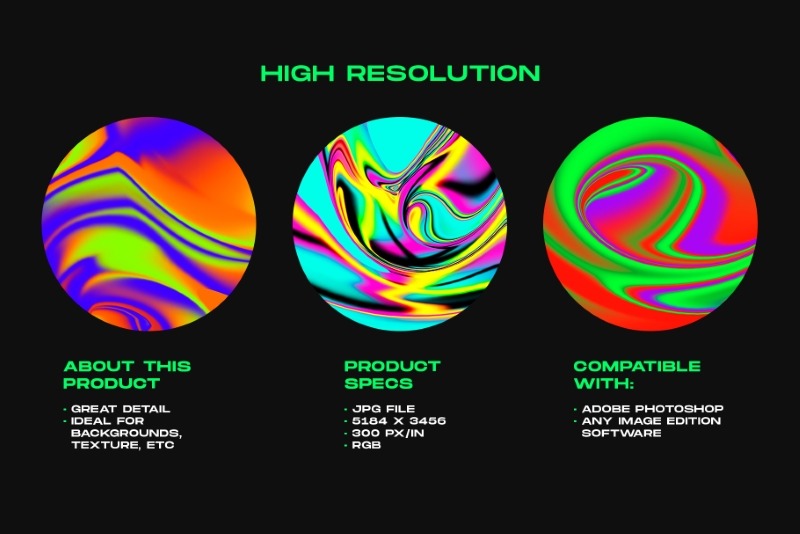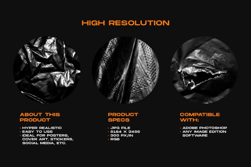 The pack delivers every texture and background in high resolution JPG files, dimensions 5000x3000px, perfect for digital designs, with a resolution of 300 pixels per inch – the package also includes a collection of Adobe Photoshop brushes with several effects that you can combine with the textures & backgrounds seamlessly to customize images, photos, content for social media & web banners