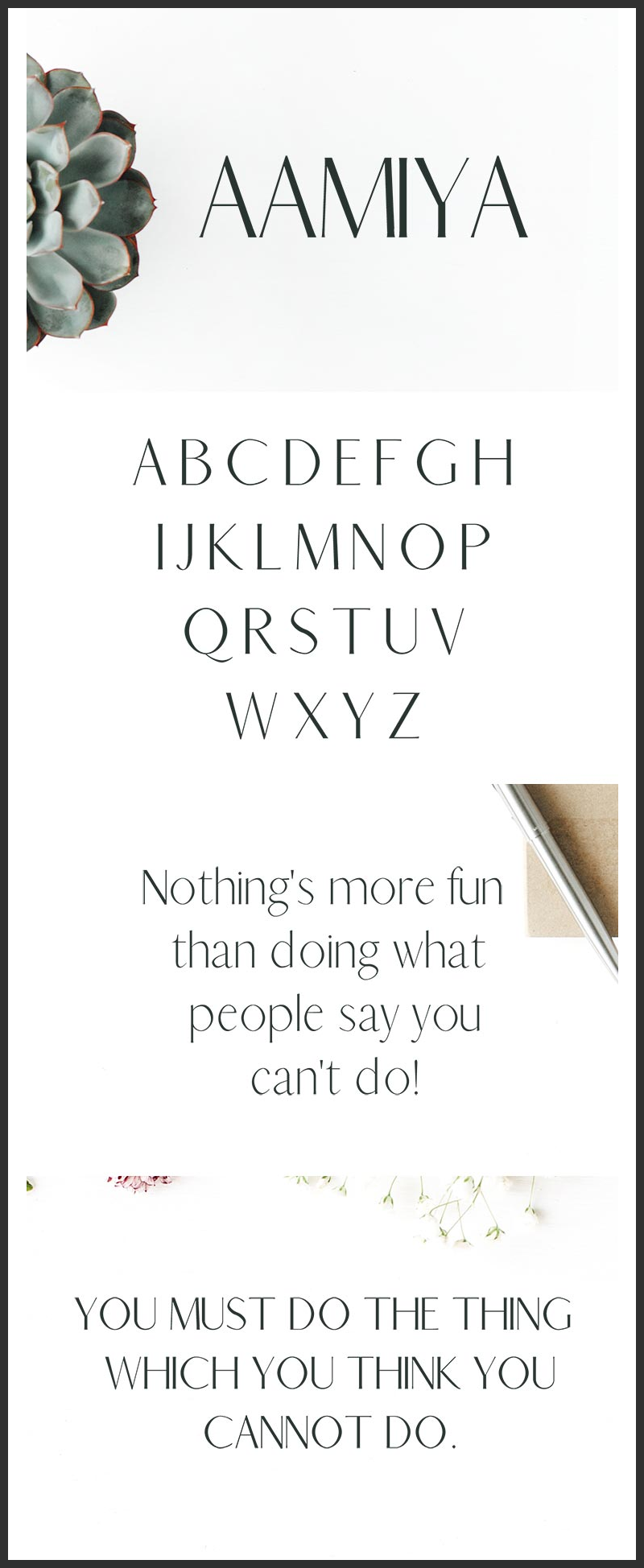 Aamiya is a free serif typeface with a modern, simple, and clean design. The download includes 2 styles: Regular and Thin, giving it the versatility and unique look needed for your design project. Created by Dribbble user Mohammad Usama.