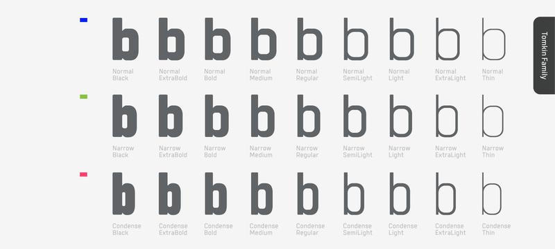 Tomkin Font Family: 54 Sans-serif Fonts, Matching Italics, 9 Weights & 3 Variations