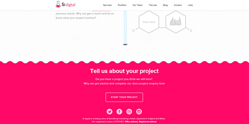 A neatly crafted contact purpose footer that remains undercover until you reach the very end of the page, then it is uncovered by the main page that you keep scrolling.