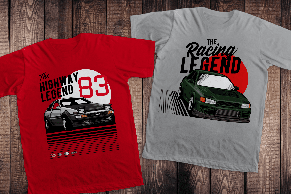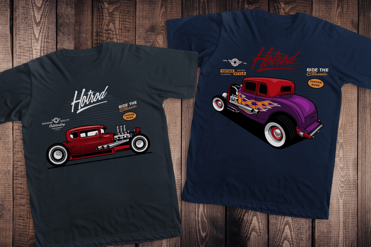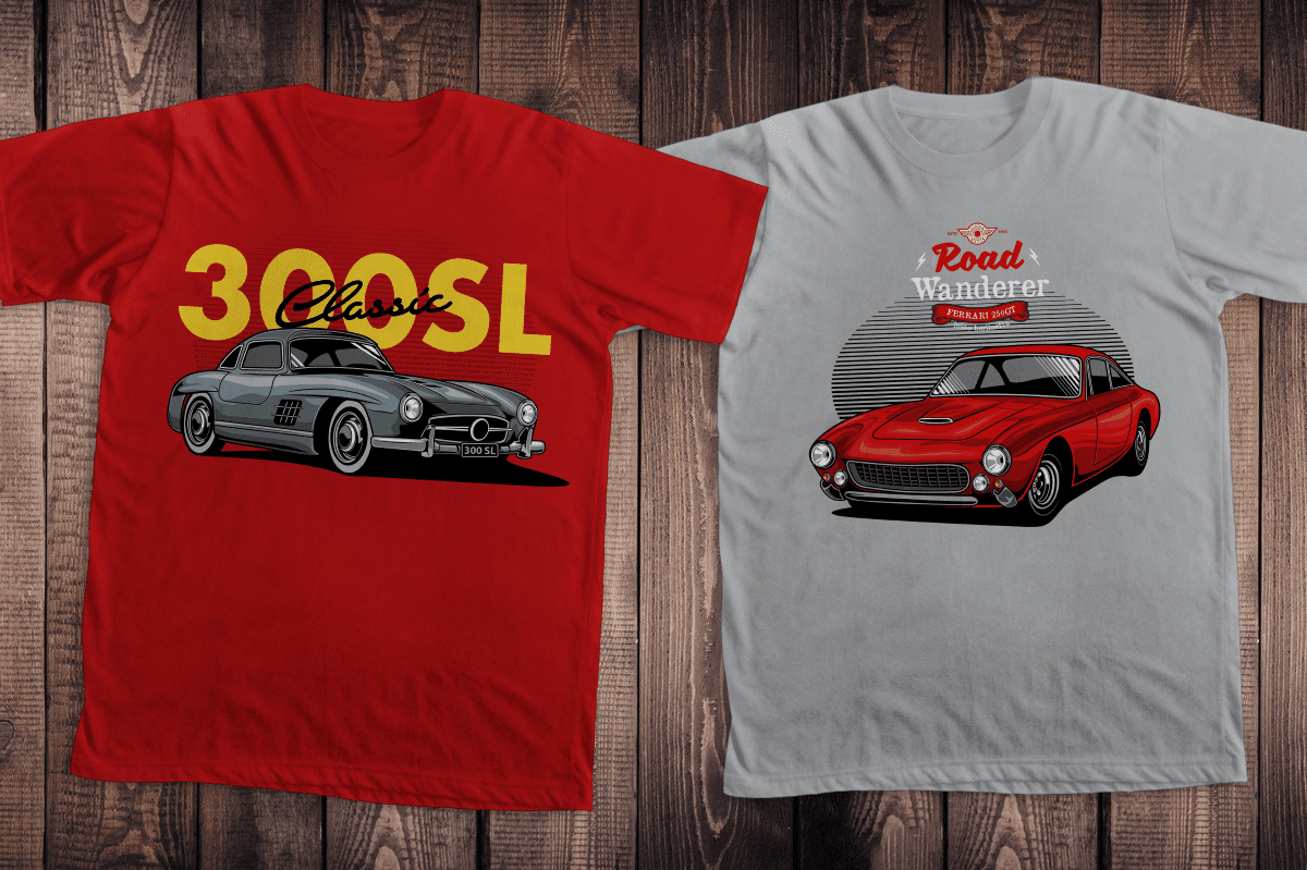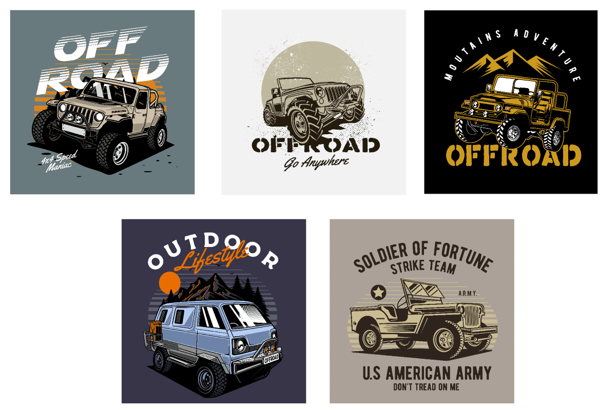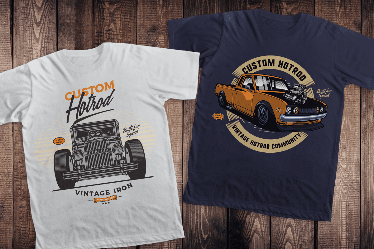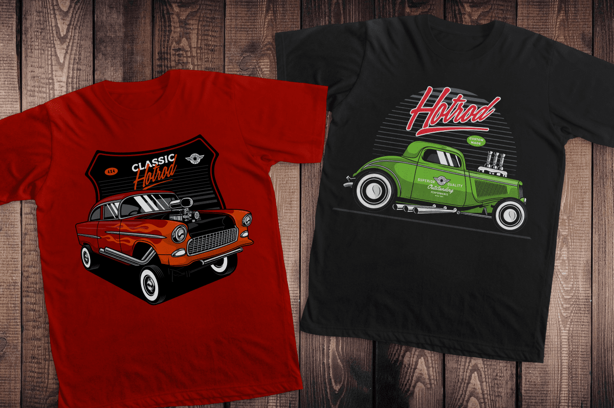 A big bundle of vector car illustrations with over 150 unique depictions of classic cars, american muscle cars, hotrods, japanese cars, offroad vehicles & trucks delivered in 100% vector source files as well as print ready raster files that you can use on for your digital designs and print projects – create t-shirt designs, posters, flyers, branding, logos and more using these awesome designs!