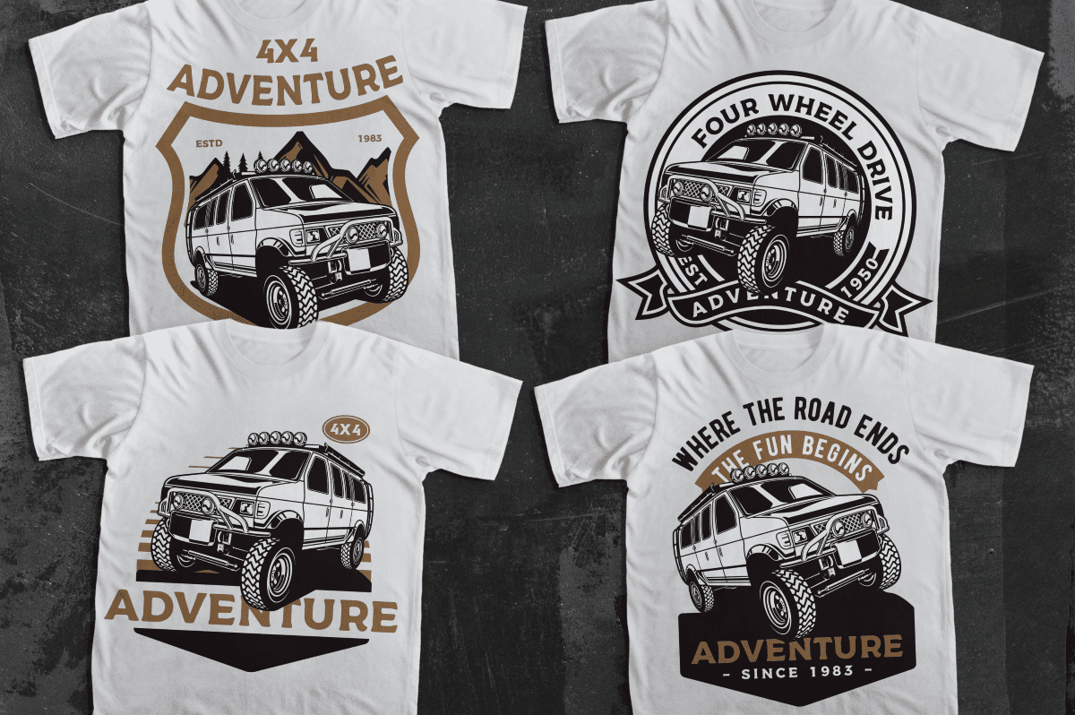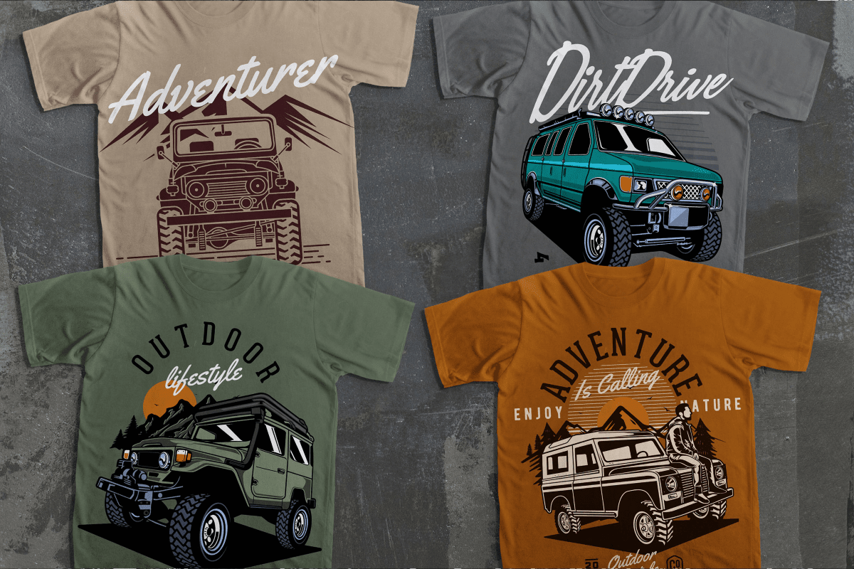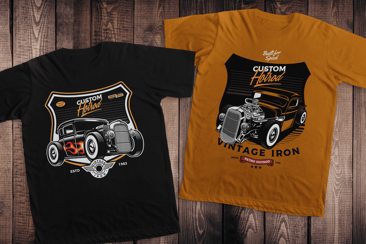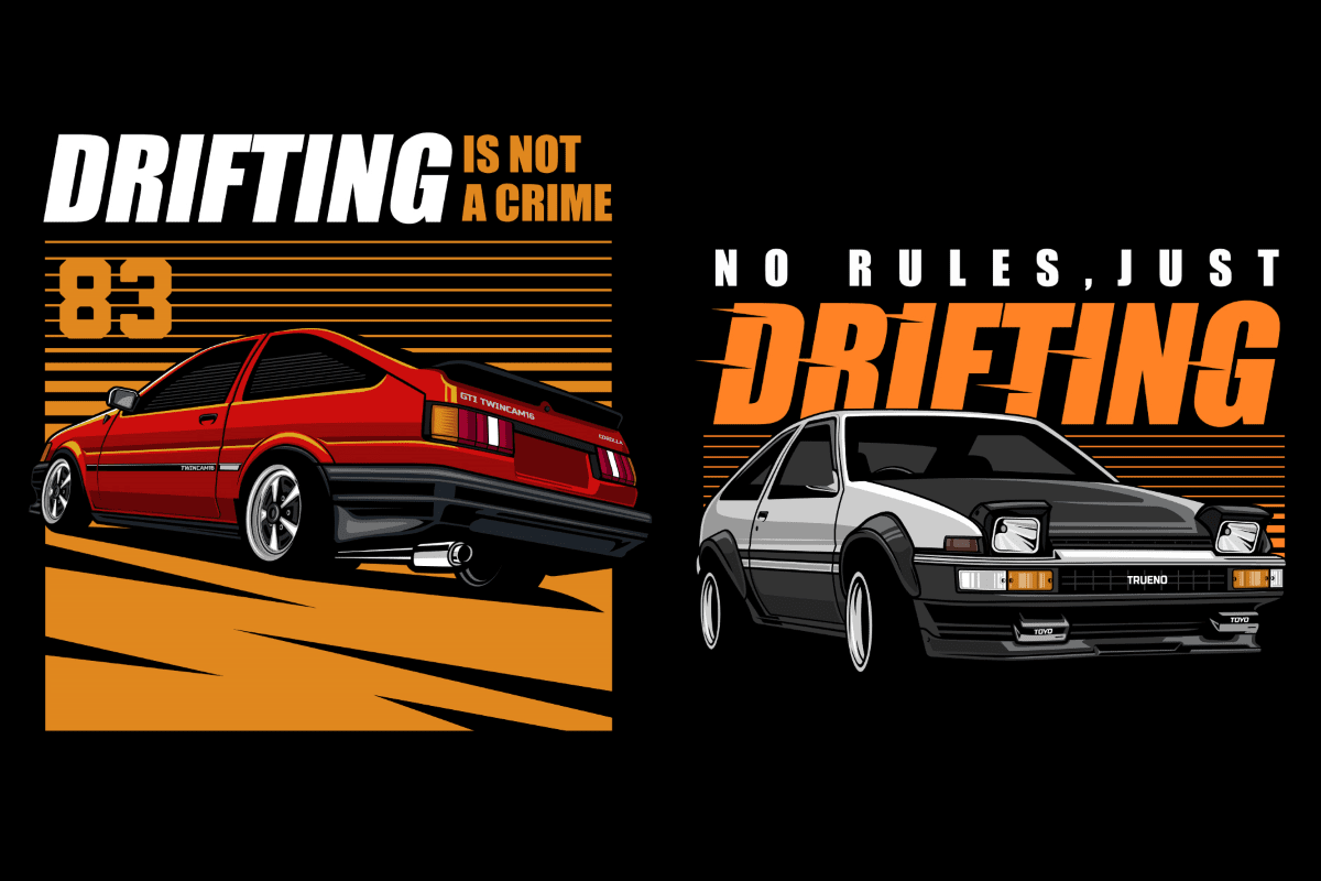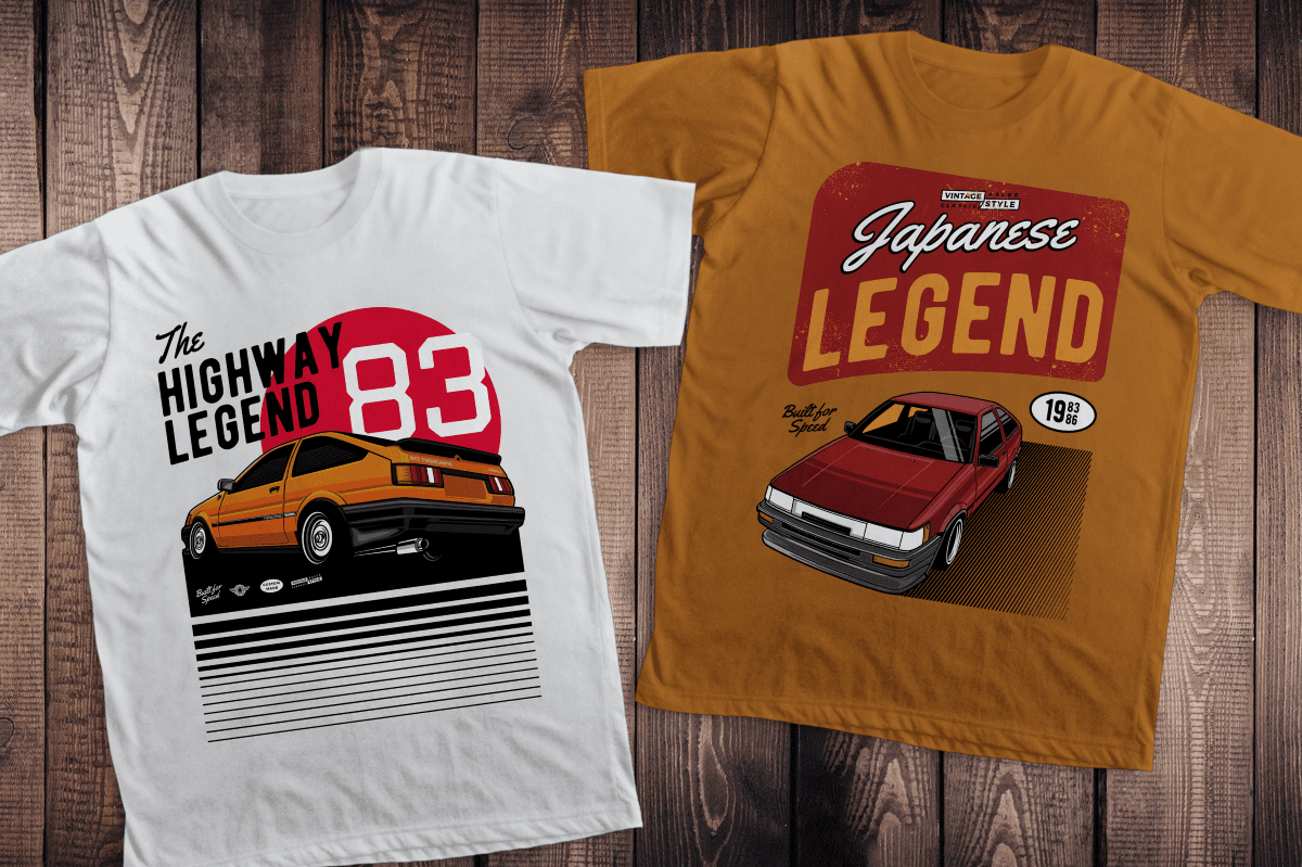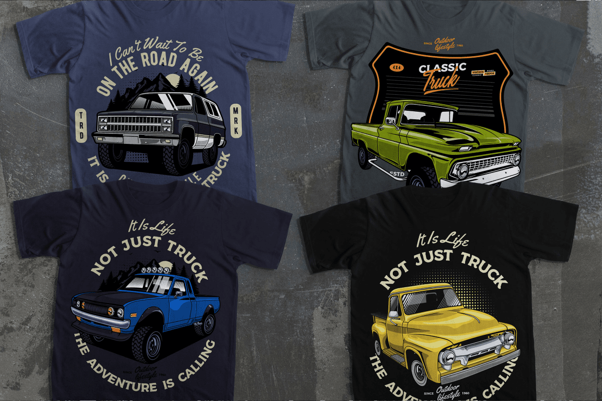 A big bundle of vector car illustrations with over 150 unique depictions of classic cars, american muscle cars, hotrods, japanese cars, offroad vehicles & trucks delivered in 100% vector source files as well as print ready raster files that you can use on for your digital designs and print projects – create t-shirt designs, posters, flyers, branding, logos and more using these awesome designs!