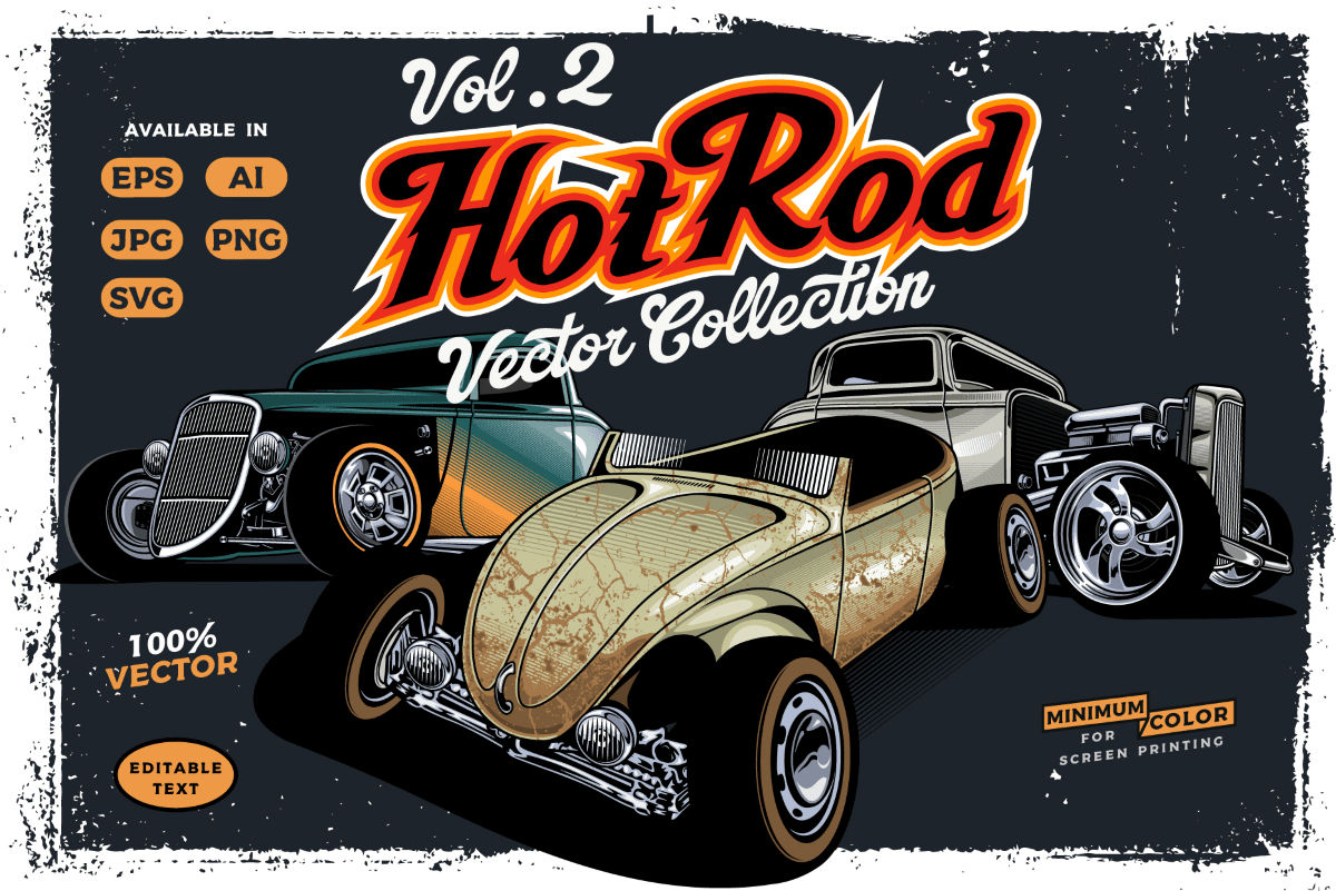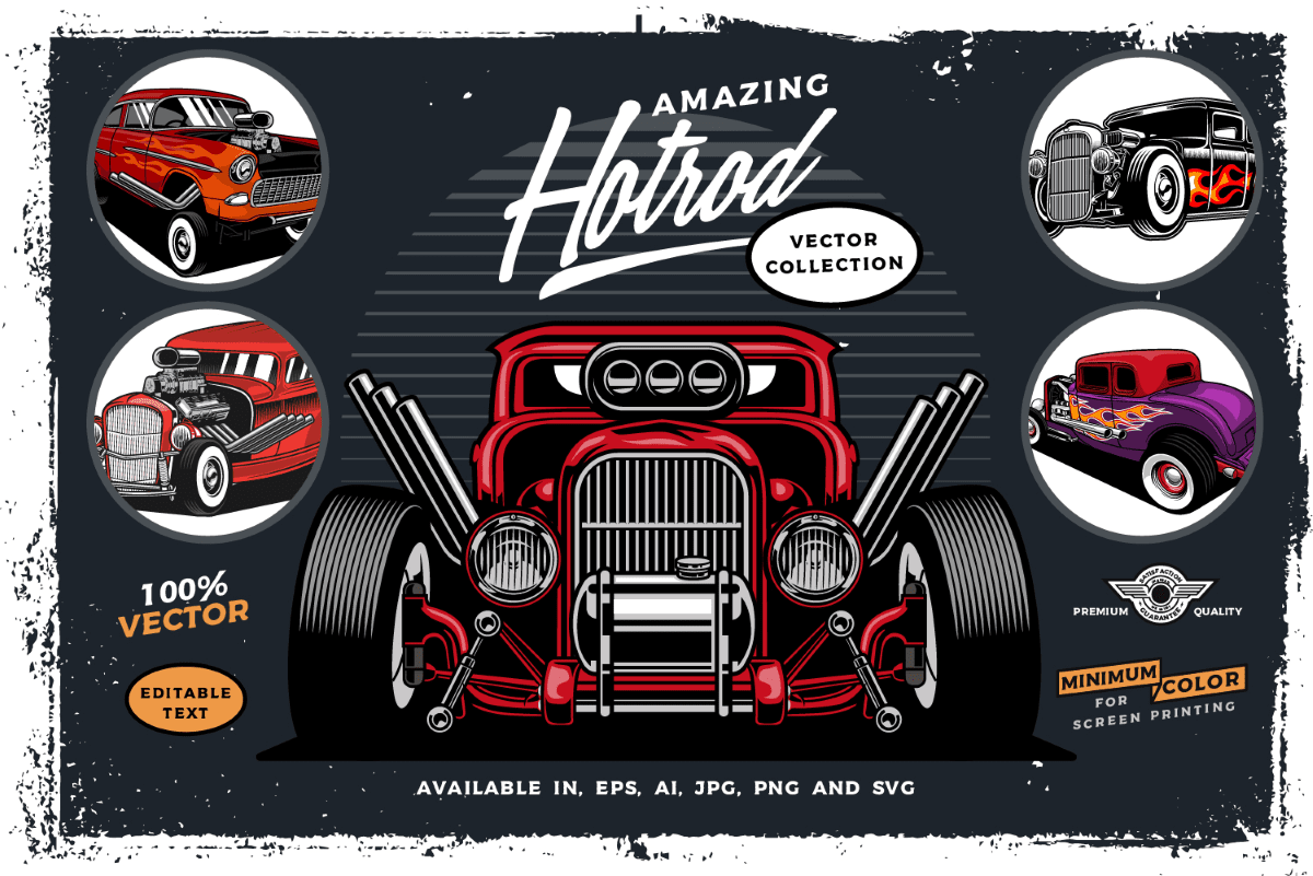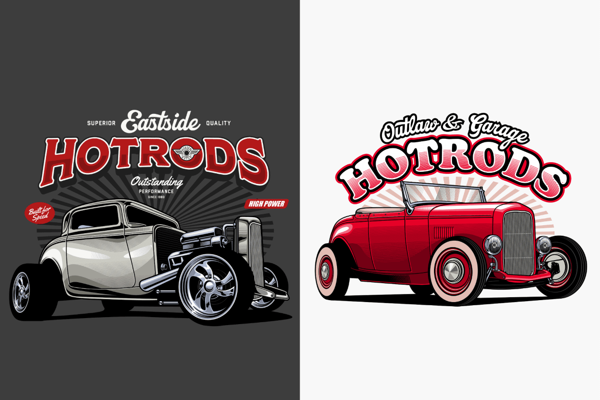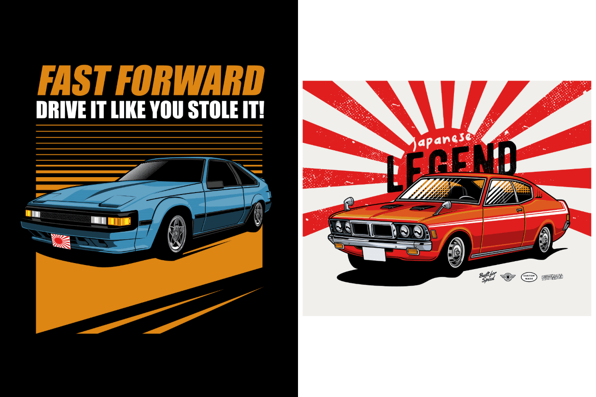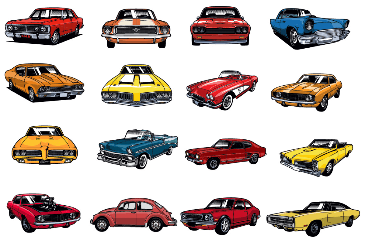 Vector Car Illustrations Pack – Hotrods, American Muscle Cars & Japanese Vehicles & More