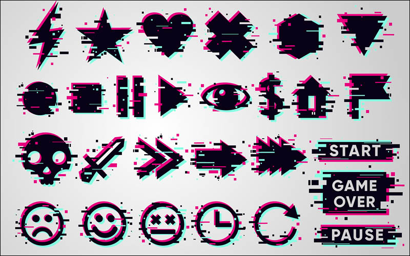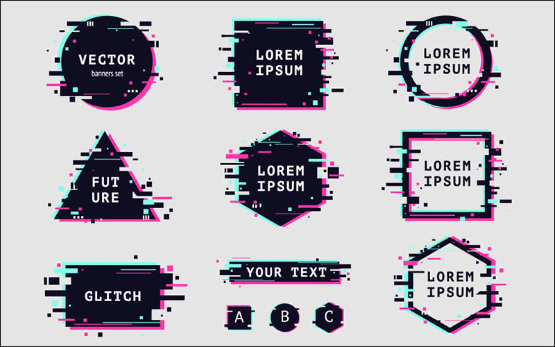 Vector Distorted, Glitch & Vintage Designs Pack – EPS, Ai & PSD Files