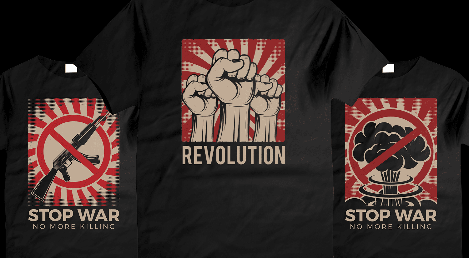 A new package of vector t-shirt designs featuring 50+ illustrations in 10 design style & theme categories, including propaganda style illustrations, vehicles, food & drinks, military, tribe-themed designs & others, a wide selection of illustrations that you’ll be able to modify however you need to, or start printing on merch right away!