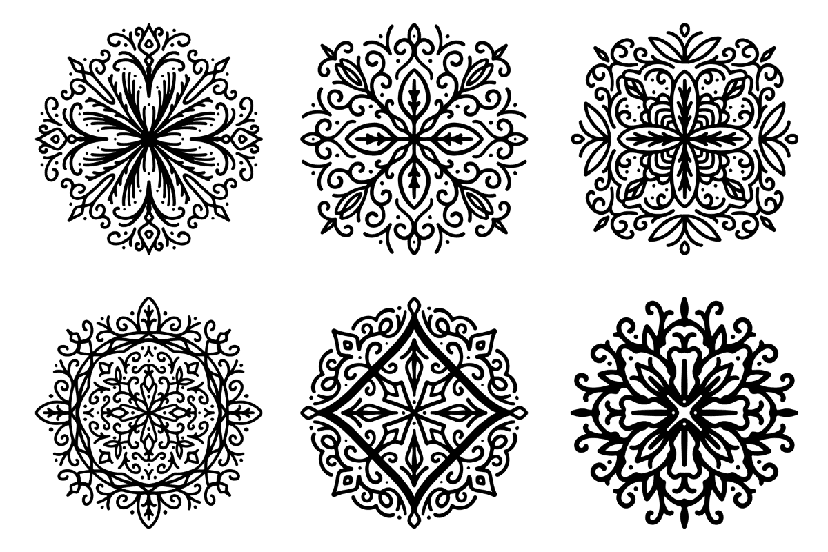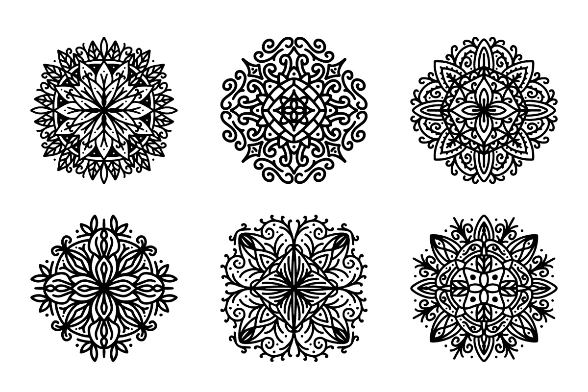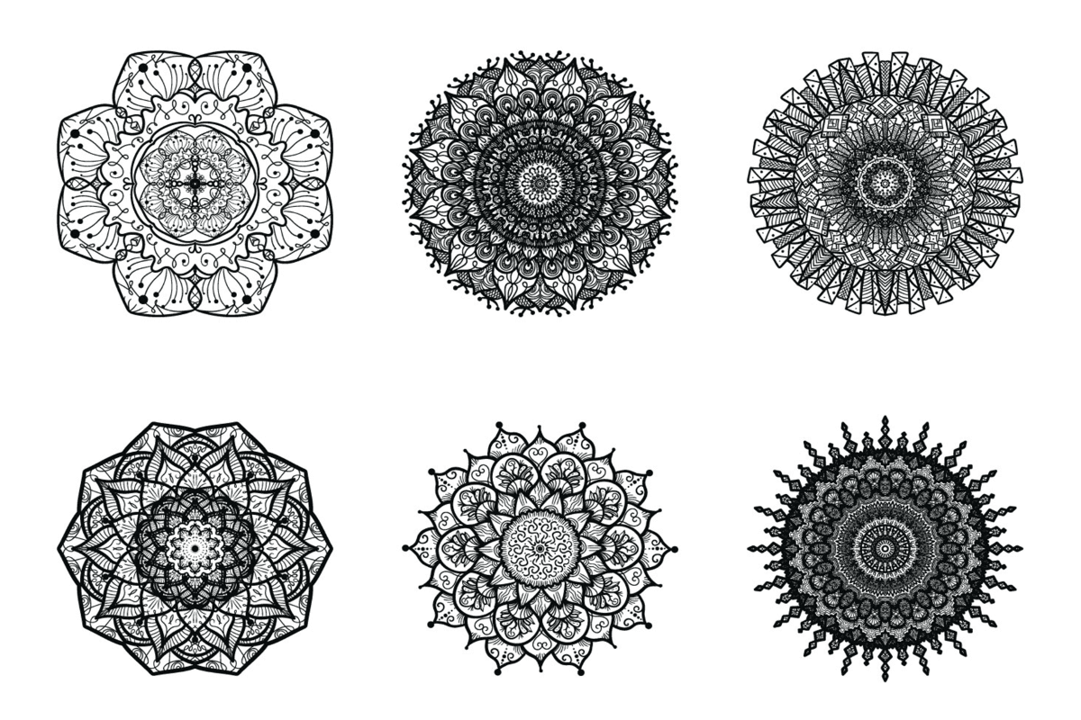 The bundle contains 6 collections of mandala designs and elements, each one delivered in AI and EPS vector formats that you can scale up and down, recolor, add/remove shapes and elements without losing image quality, and they also include a high resolution PNG version with transparent background that you can use in drag & drop platforms like Artify to create graphics for social media, blogs, or print.