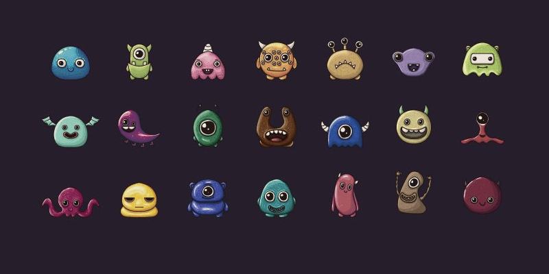 This is a set of 40 vector monster graphics in Illustrator, EPS, and transparent PNG file formats. They can be used as characters or objects in various casual games or as icons for the app store. The elements are highly editable layered vectors making them easy to customize and change size and colors without losing quality.