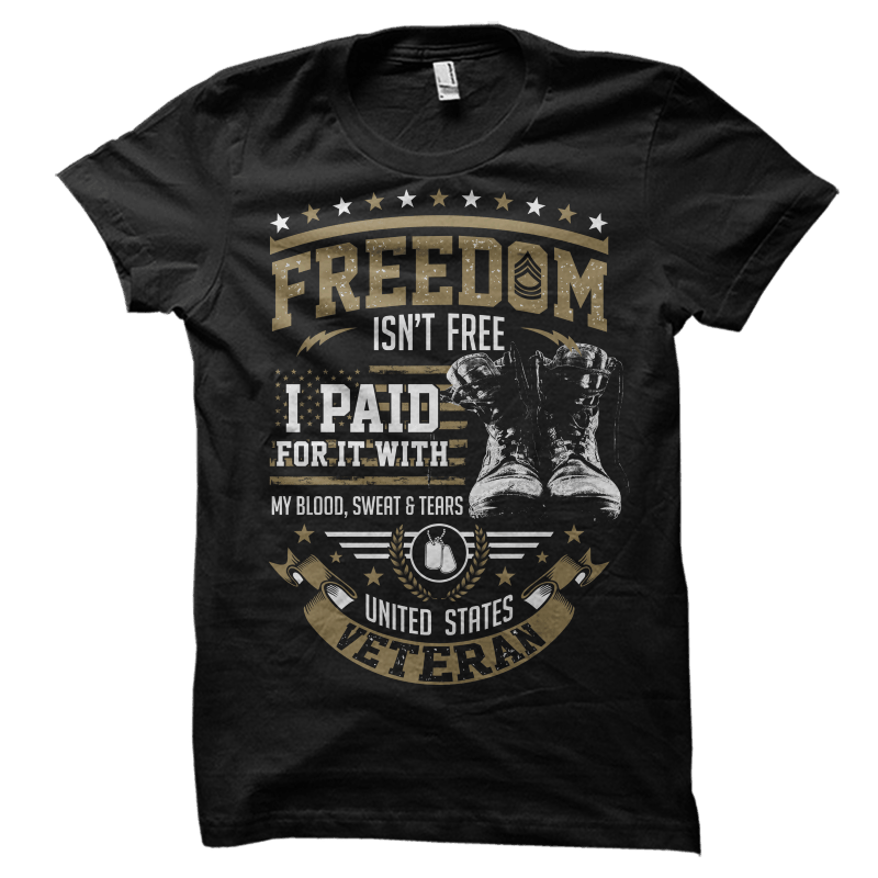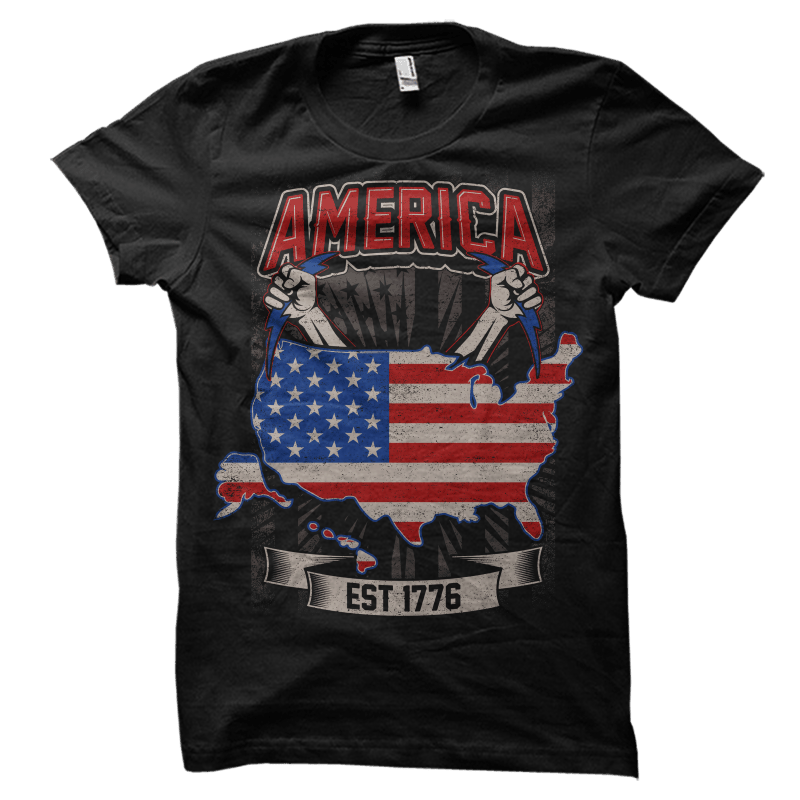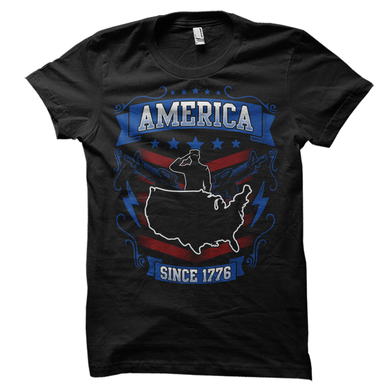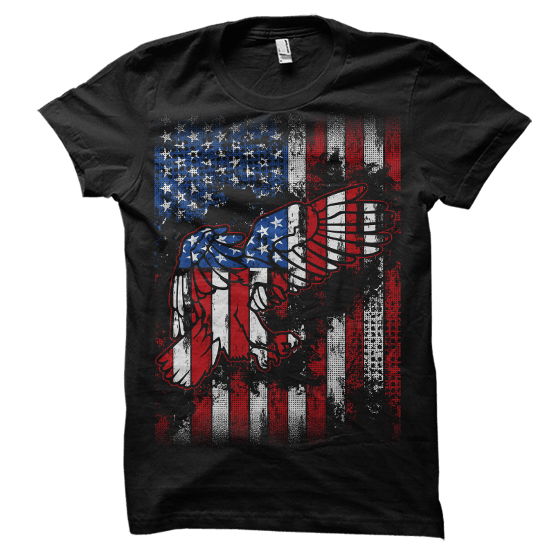 Check out this vector t-shirt designs collection, packed with neat american themed illustrations such as distressed & calligram flags, war veteran illustrations & quotes, red, white & blue colors, american quotes & many more design styles
