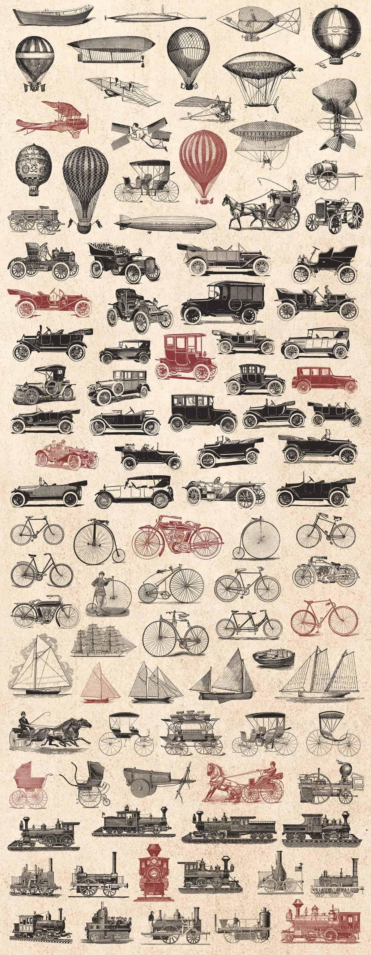 - Original vintage illustrations, restored from antique printed media