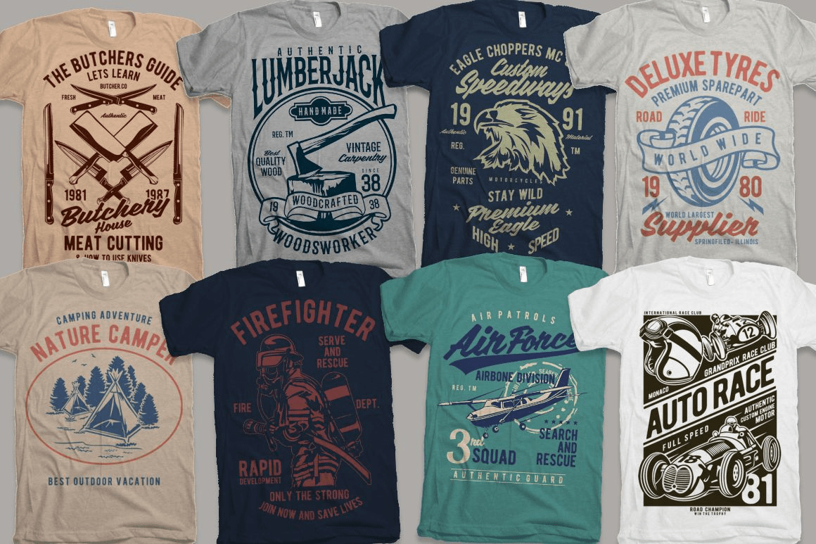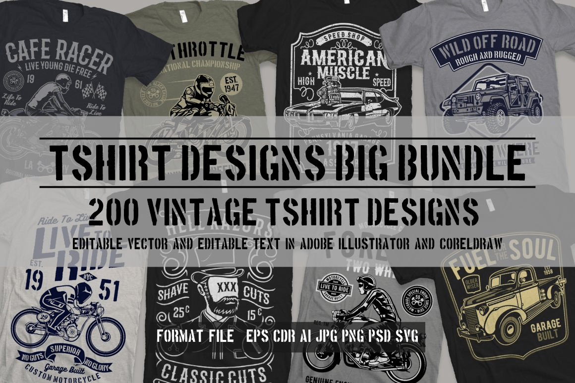 Vintage T-Shirts Bundle, 200 Print Ready T-Shirt Designs with Vector Sources