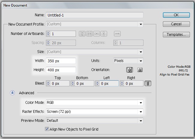 Once you have decided the look that your typewriter will have, open your Illustrator and create a new document with the following properties: