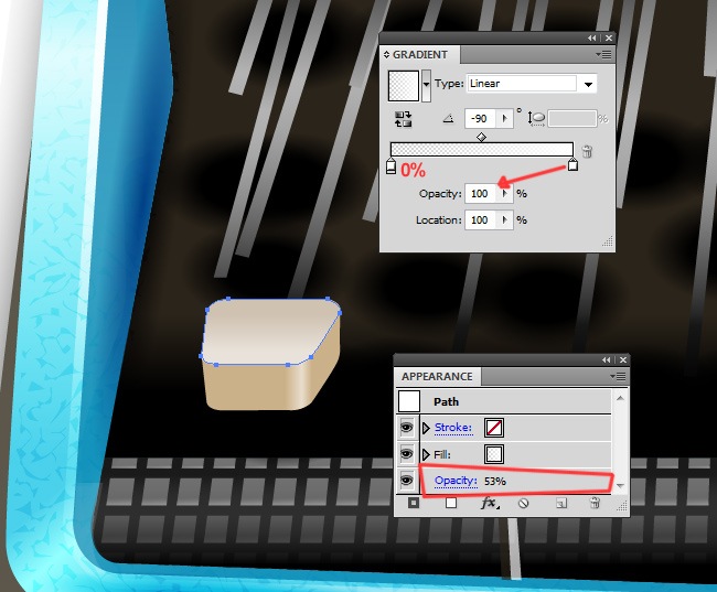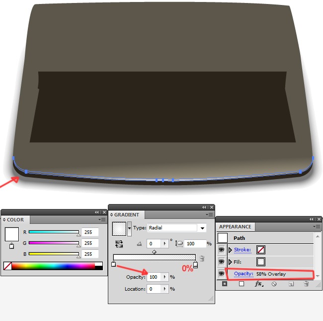 And now a subtle highlight at the bottom with a radial fill, remember that the G key lets you see and adjust the gradient’s axis.