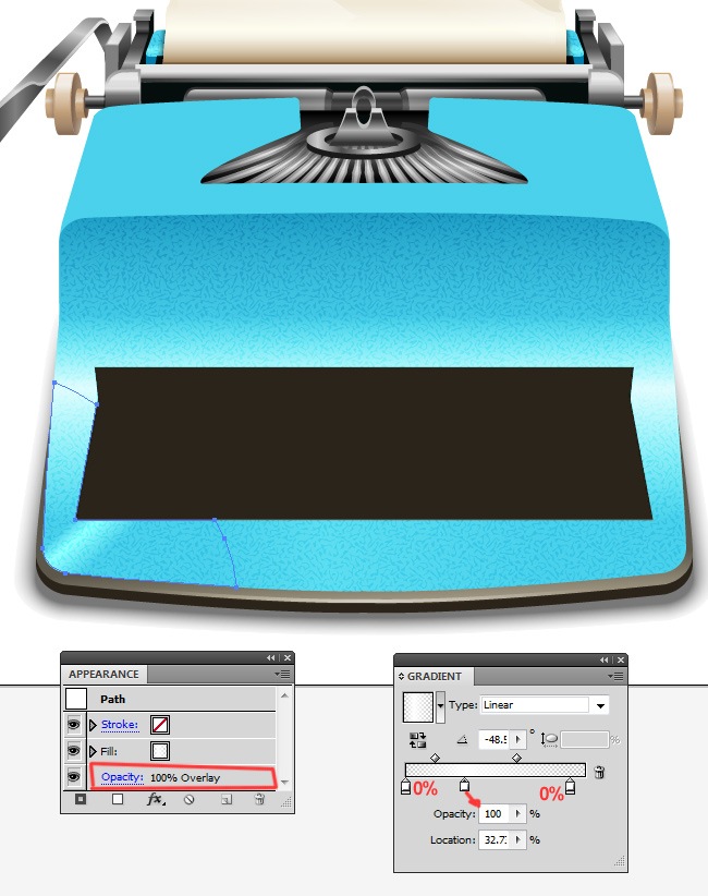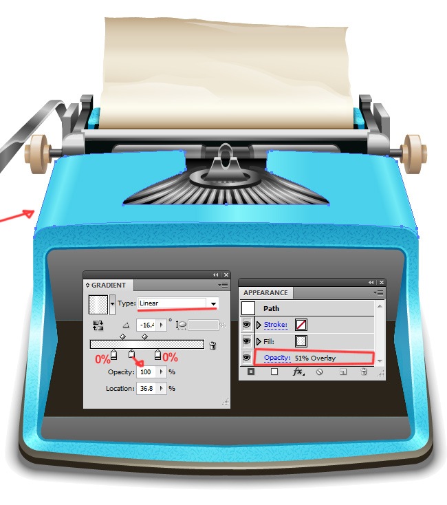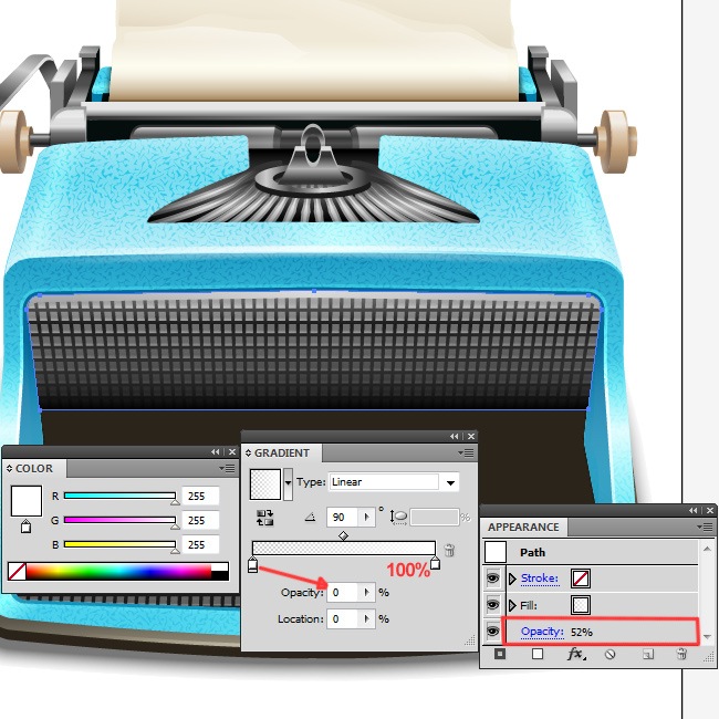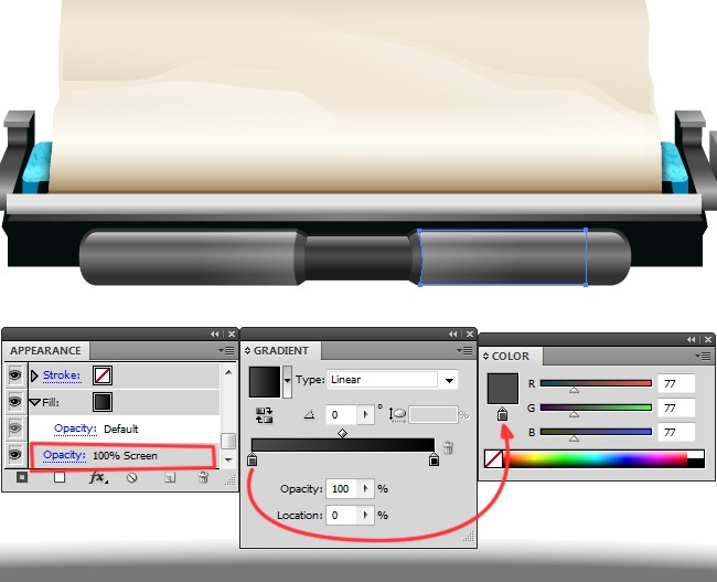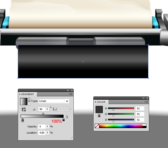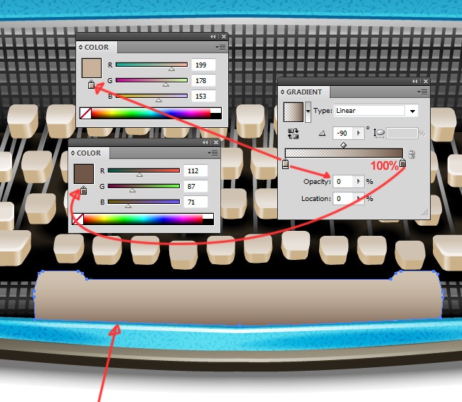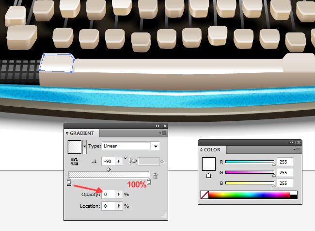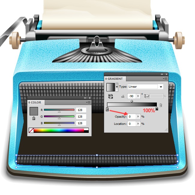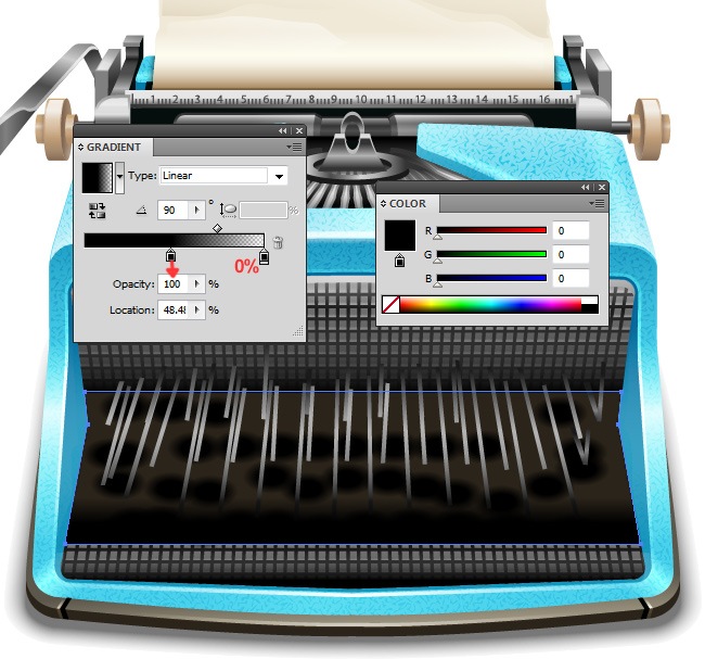 This little component of the typewriter is essential because is the one with the mission of align the types and raise / lower the ribbon. Despite of its essential function, designing it on Illustrator requires a little effort from you, so let’s clean this one quickly.