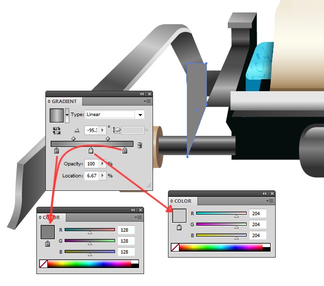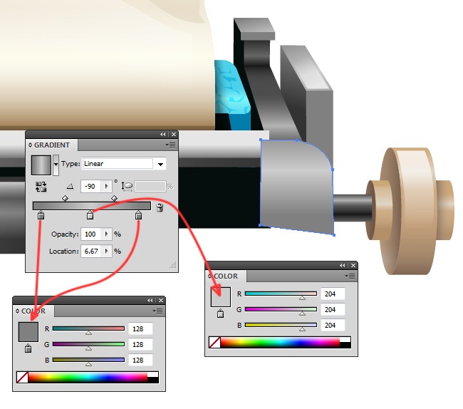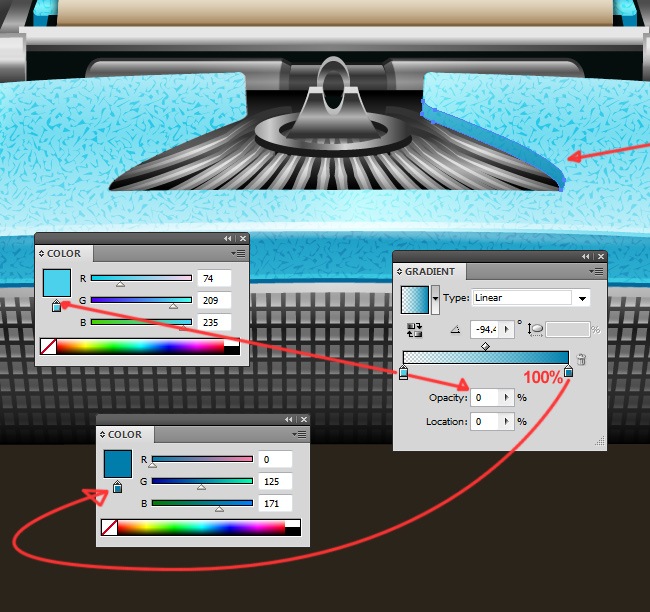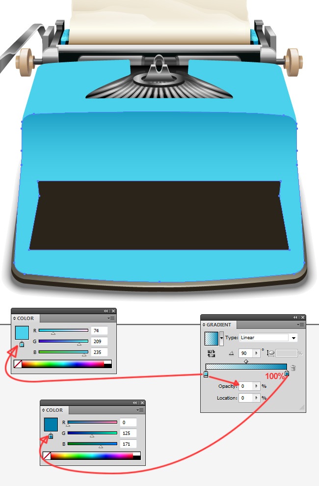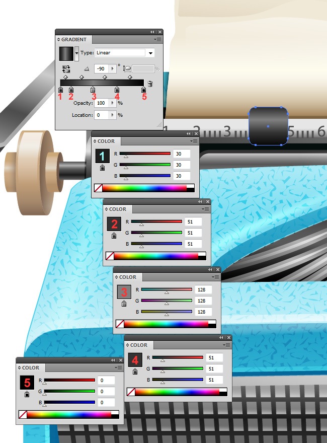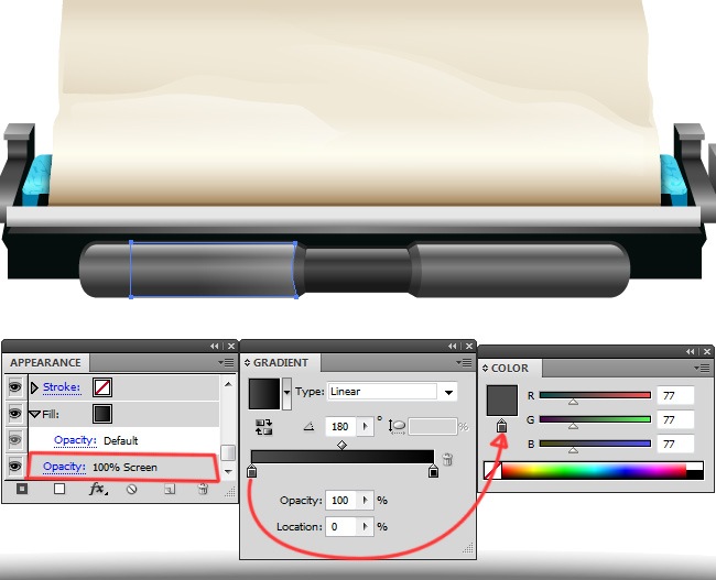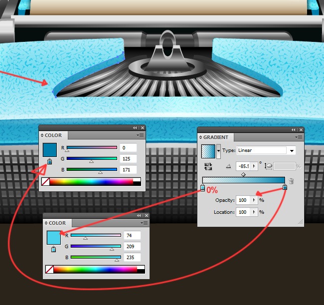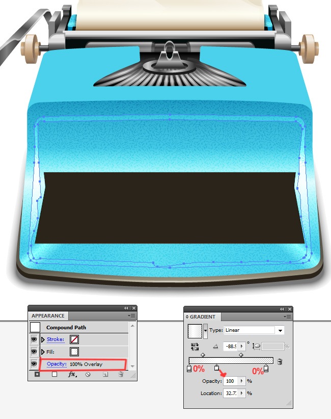 This little component of the typewriter is essential because is the one with the mission of align the types and raise / lower the ribbon. Despite of its essential function, designing it on Illustrator requires a little effort from you, so let’s clean this one quickly.
