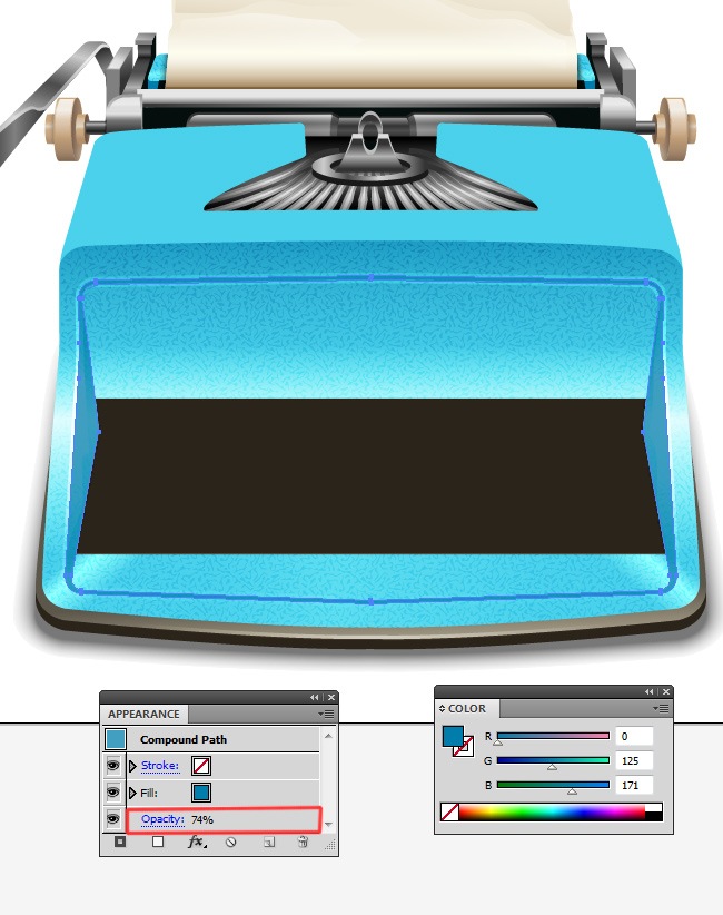 And now we’re going to add a couple of subtle elements that despite their size will add a nice detail to our vintage typewriter.
