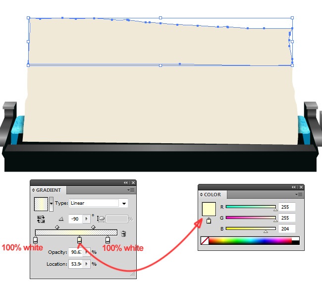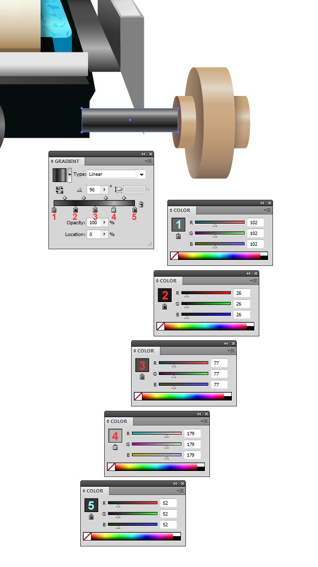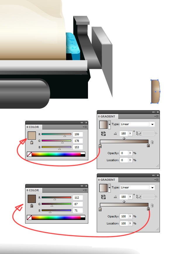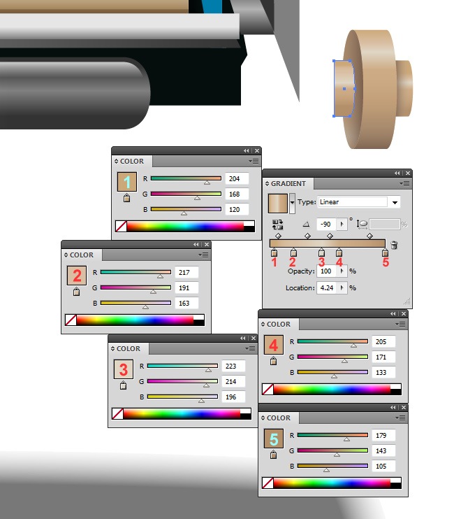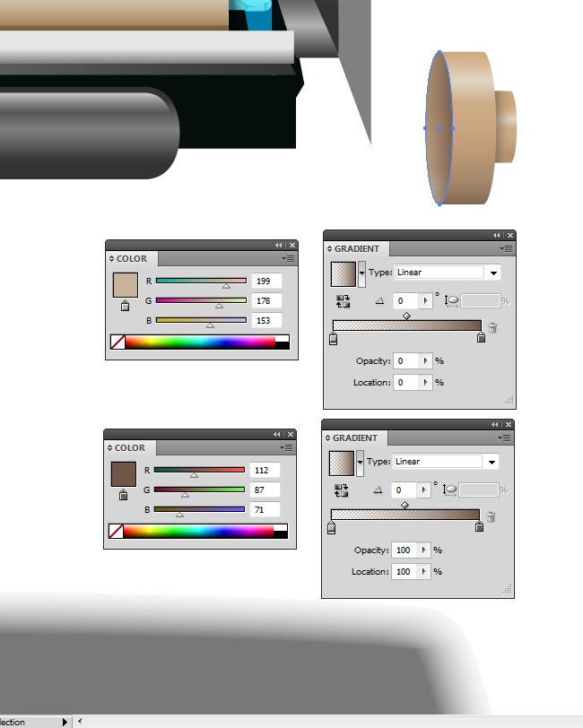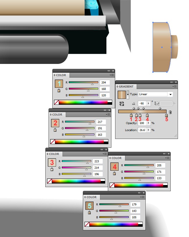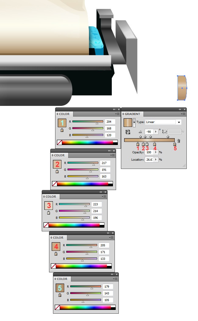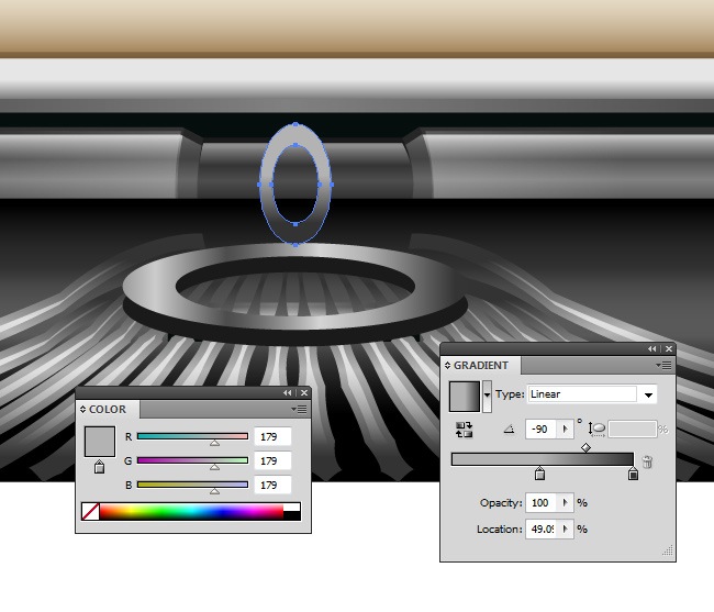OK, we’re getting closer to the end with every new element that we create, now it’s time for the type levers, which are easy to do and will contribute to the realism of our typewriter. The levers are nothing more than basic vector shapes filled with a gradient, let’s see how they are made.