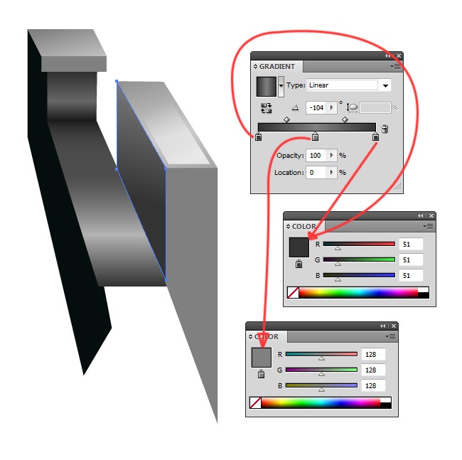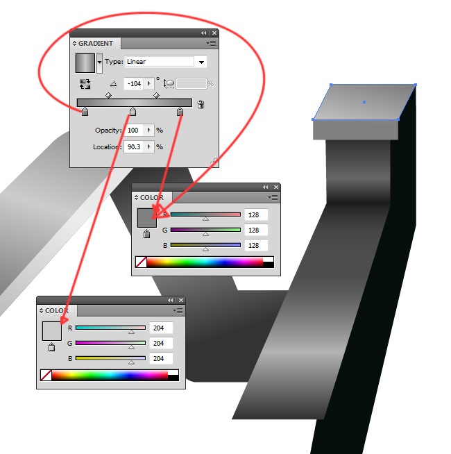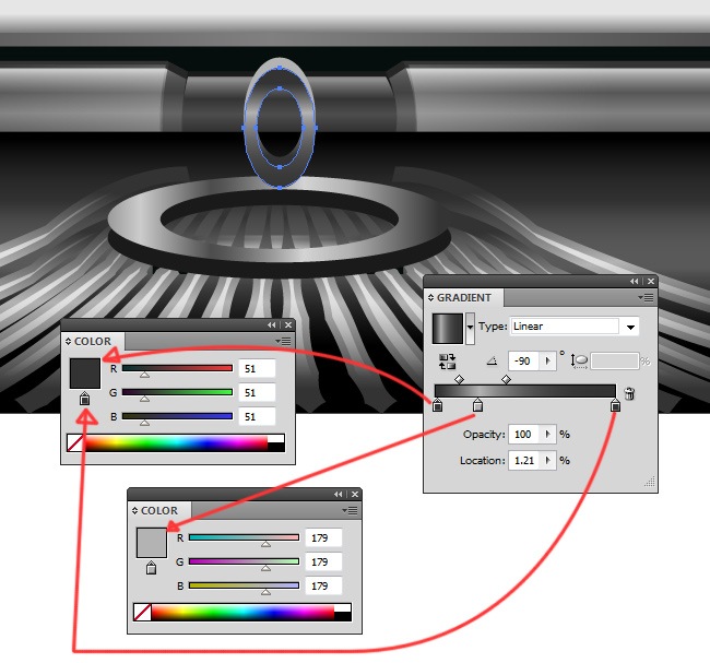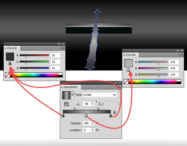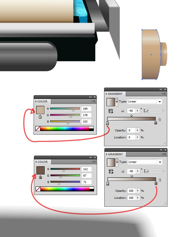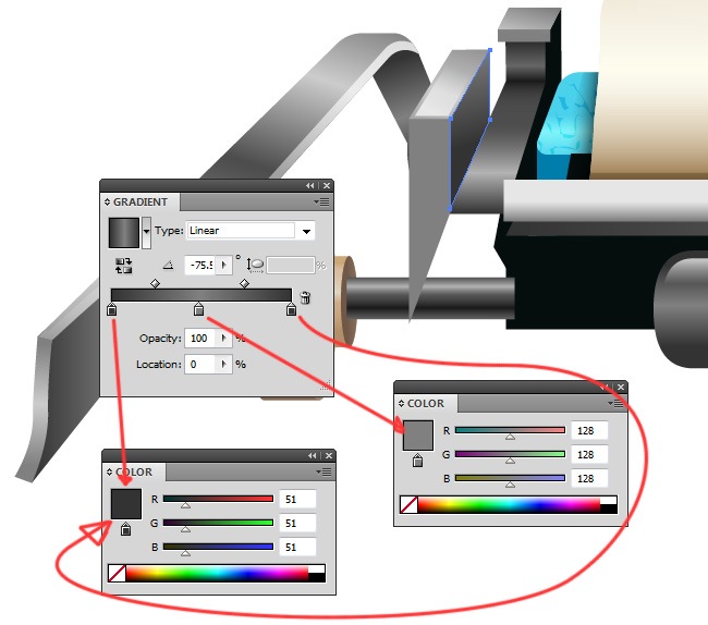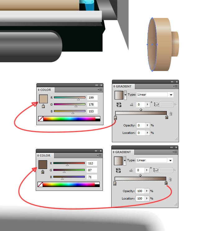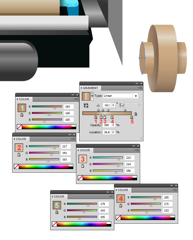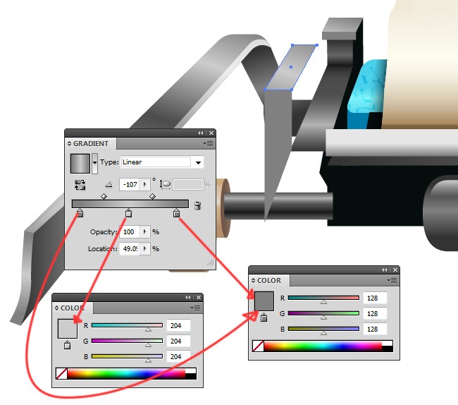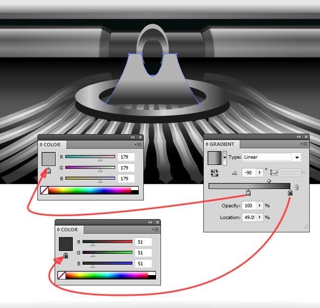 OK, we’re getting closer to the end with every new element that we create, now it’s time for the type levers, which are easy to do and will contribute to the realism of our typewriter. The levers are nothing more than basic vector shapes filled with a gradient, let’s see how they are made.