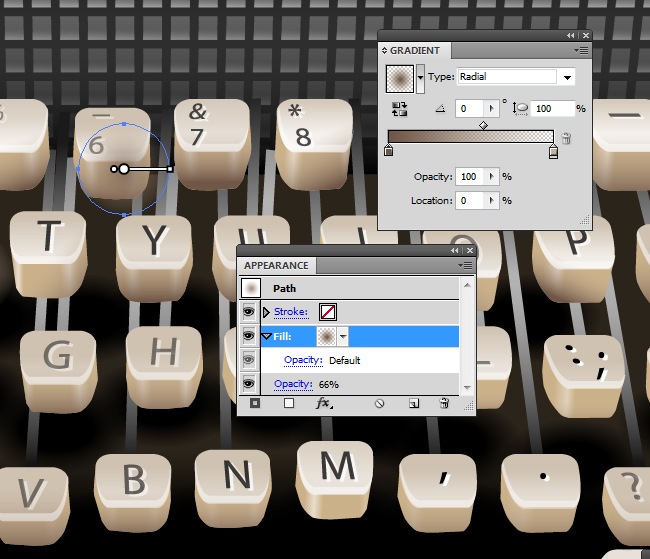 And now we continue with the implementation of a subtle radial shadow on top of our typewriter’s housing.