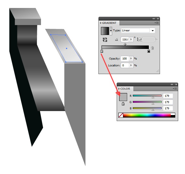 Duplicate the object that we created a couple of steps ago, then flip it horizontally and place it where it belongs.