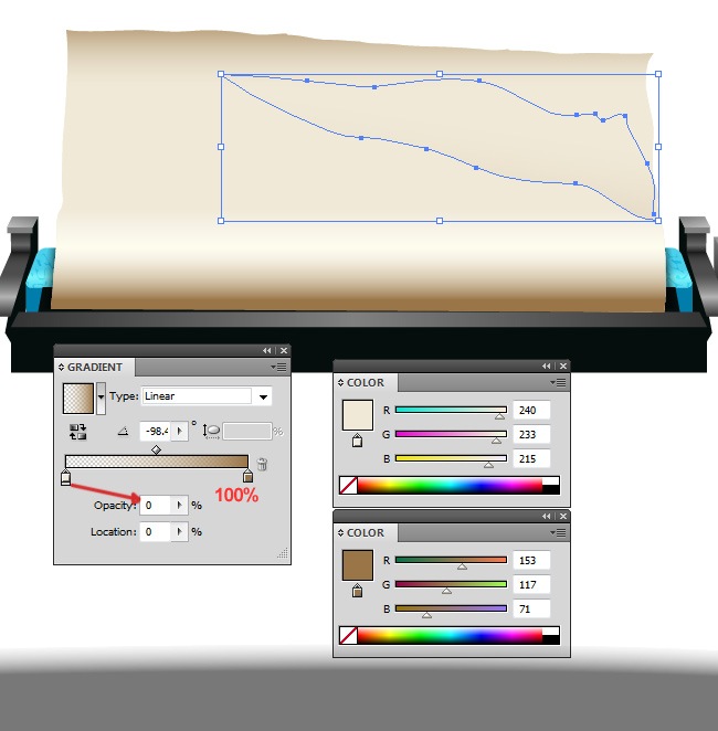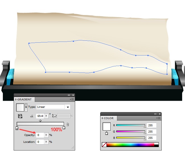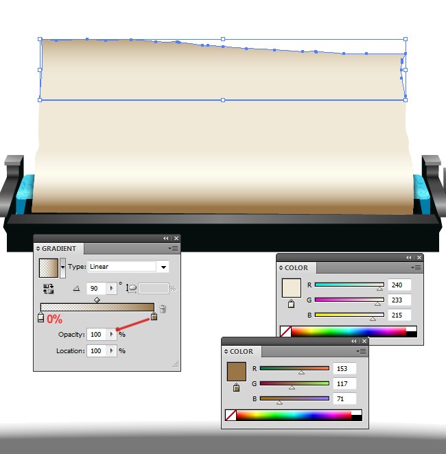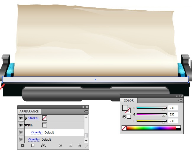 So now that we have the top of our typewriter ready, we can continue with the design of the paper. You can choose many different papers, including regular paper, parchment, photo paper and more; on this opportunity we’re going to work with and old parchment piece of paper, ideal to use with the whole vintage look that we’re looking for. Let’s start by adding a couple of shadows at both sides of our machine.