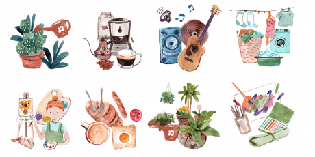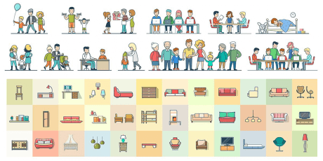 Illustrations Bundle, Trendy Material-Like Style (Characters, Objects, Scenes)