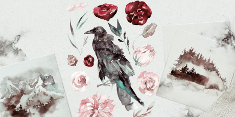 Floral Watercolor Illustrations Bundle with Transparent Backgrounds, Banners & Borders