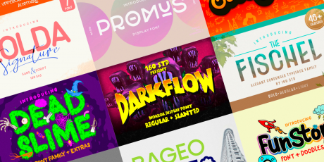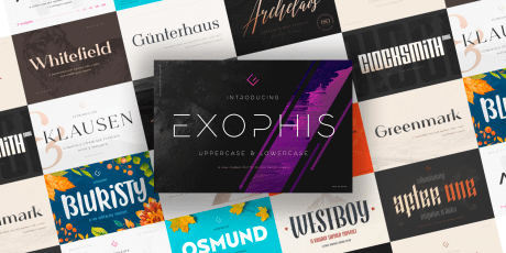 64 Display Fonts Pack, Only $17: Desktop & Web License, TTF, OTF, WOFF & WOFF2 Files, Multi Language Support, OpenType Features, Different Effects & Styles: Monoline, Grunge, Script & More