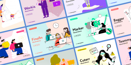100 Website Hero Illustrations & UX Compositions, Ai & EPS Vector Files