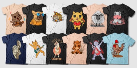 237 Trendy & Unique Vector T-Shirt Designs: Includes High-Resolution Transparent PNG Files, Vector Files in Ai & EPS Format, Print Ready 300dpi, Editable Texts, Commercial Use