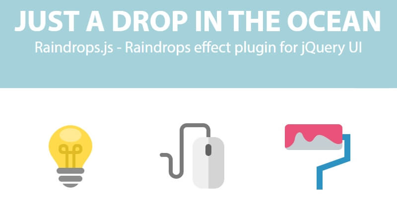 Raindrops is a jQuery plugin for creating beautiful raindrops and wavy effects for any kind of web elements. It is inspired by an article about making a dynamic 2D water effect, adapting a JavaScript library and a jQuery plugin with the physics.