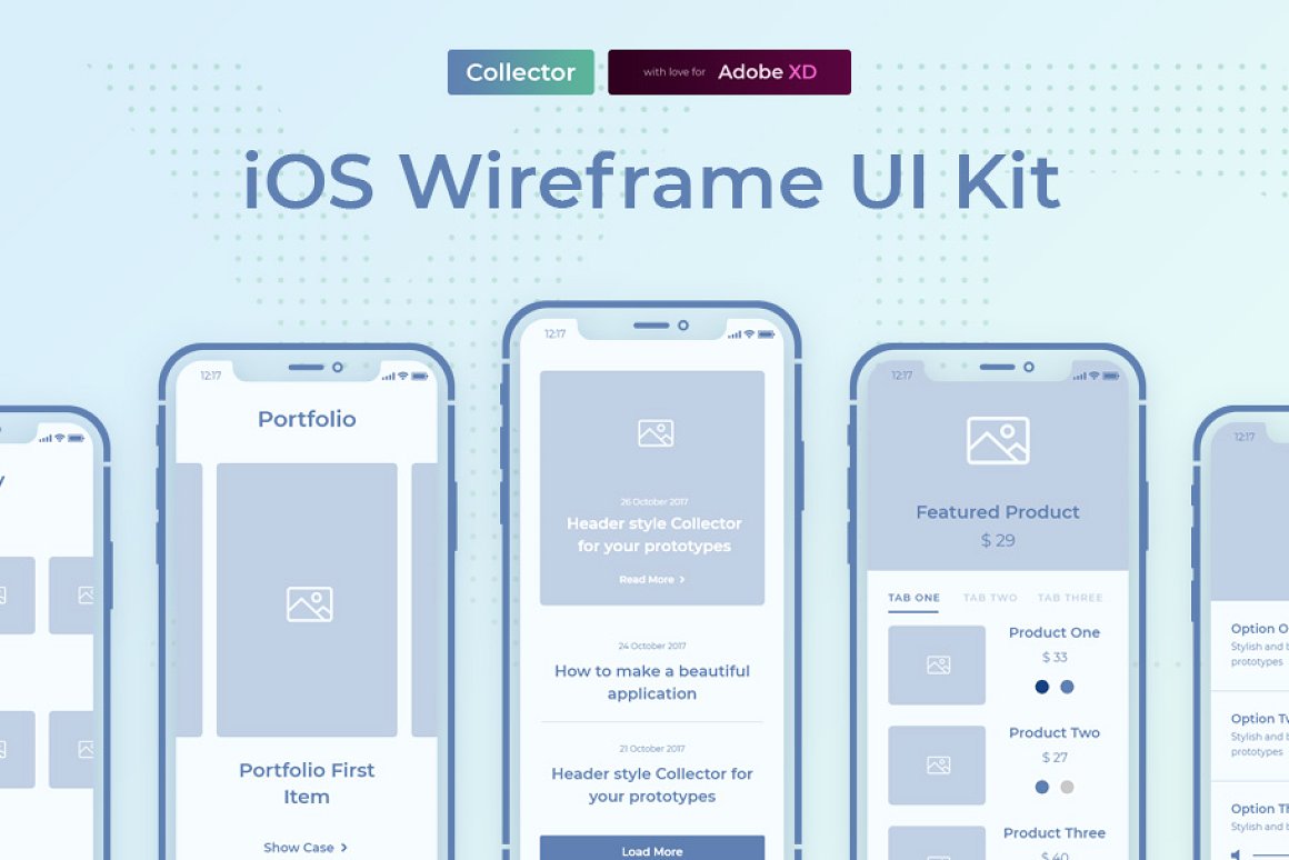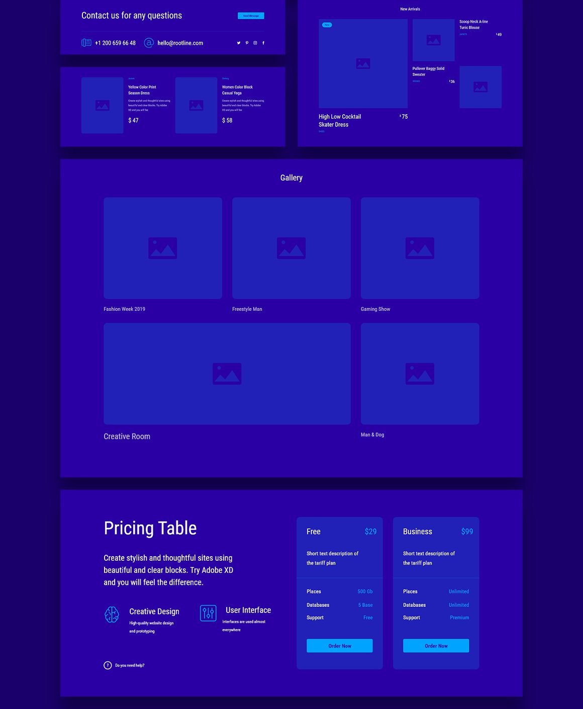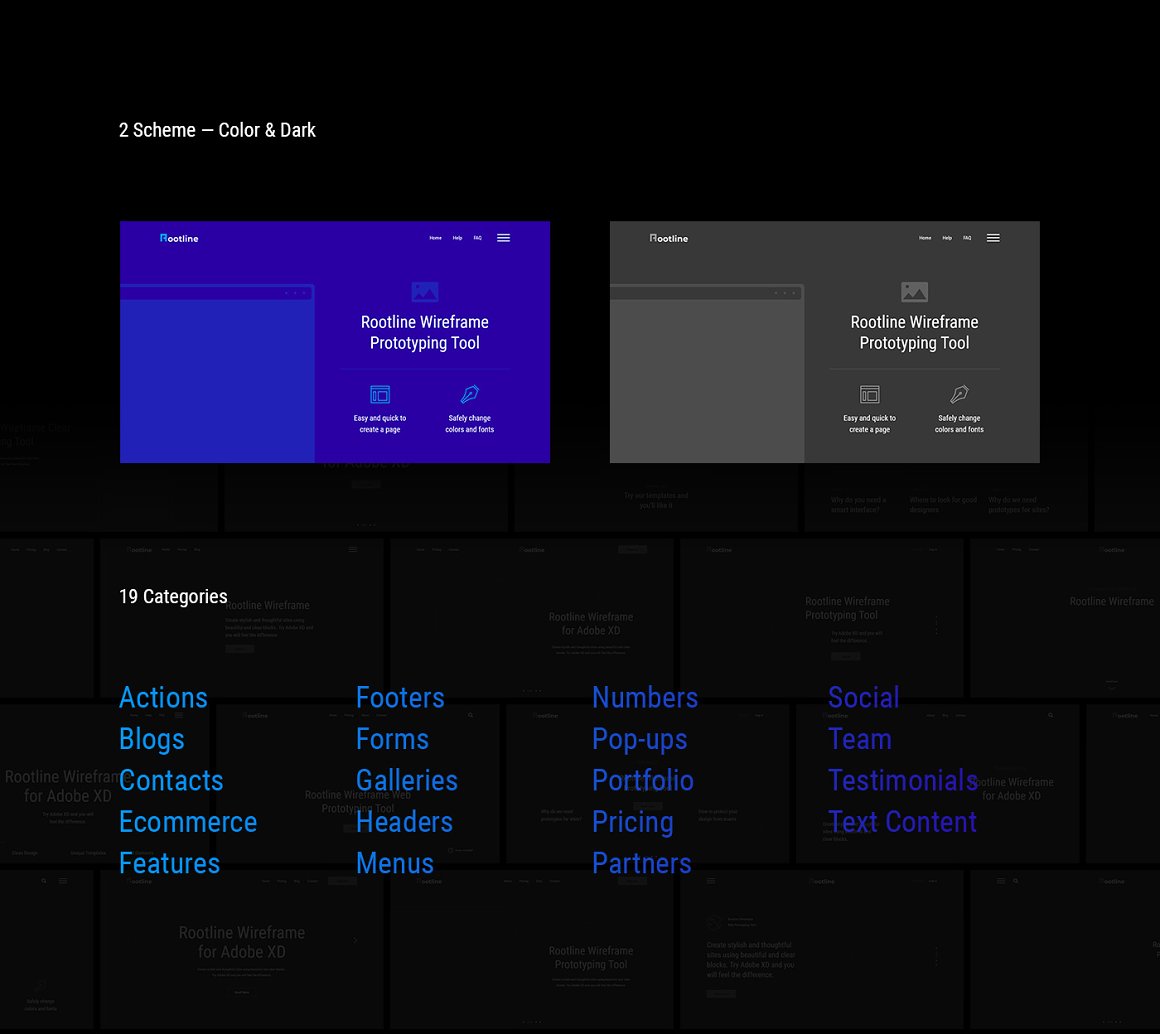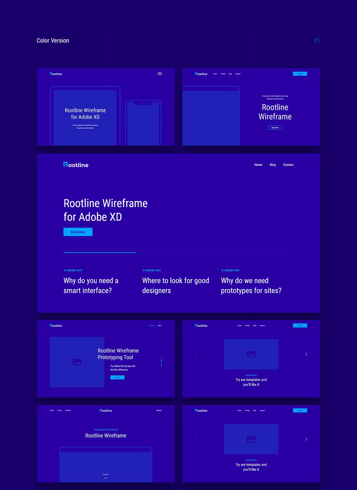 The pack delivers each kit separately so you’ll get a collection with wireframe kits and UI kits for Figma, Adobe XD & Adobe Photoshop with a huge variety of layouts with bootstrap grids for web, mobile & tablets, fully customizable, with use ready screens & web pages