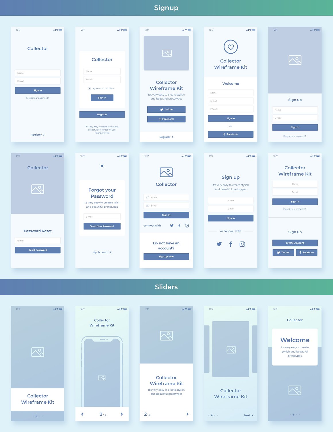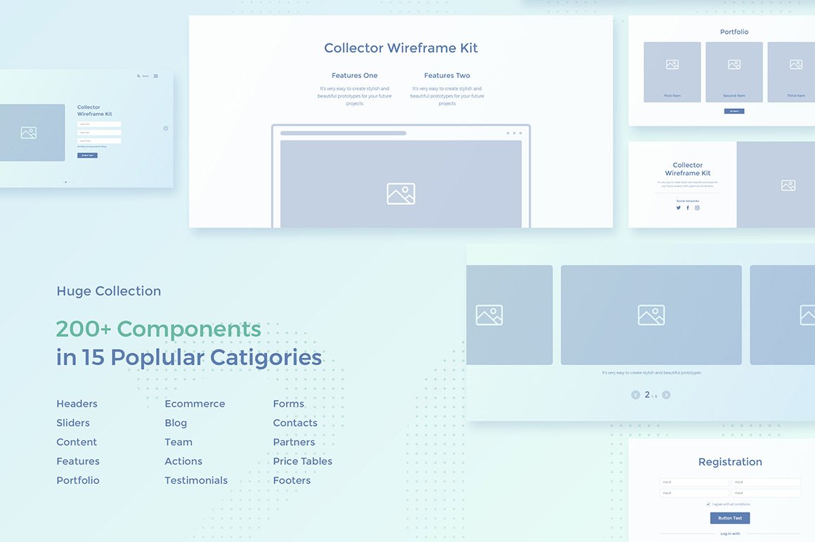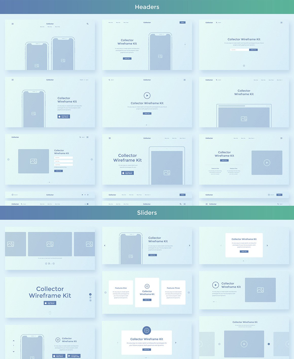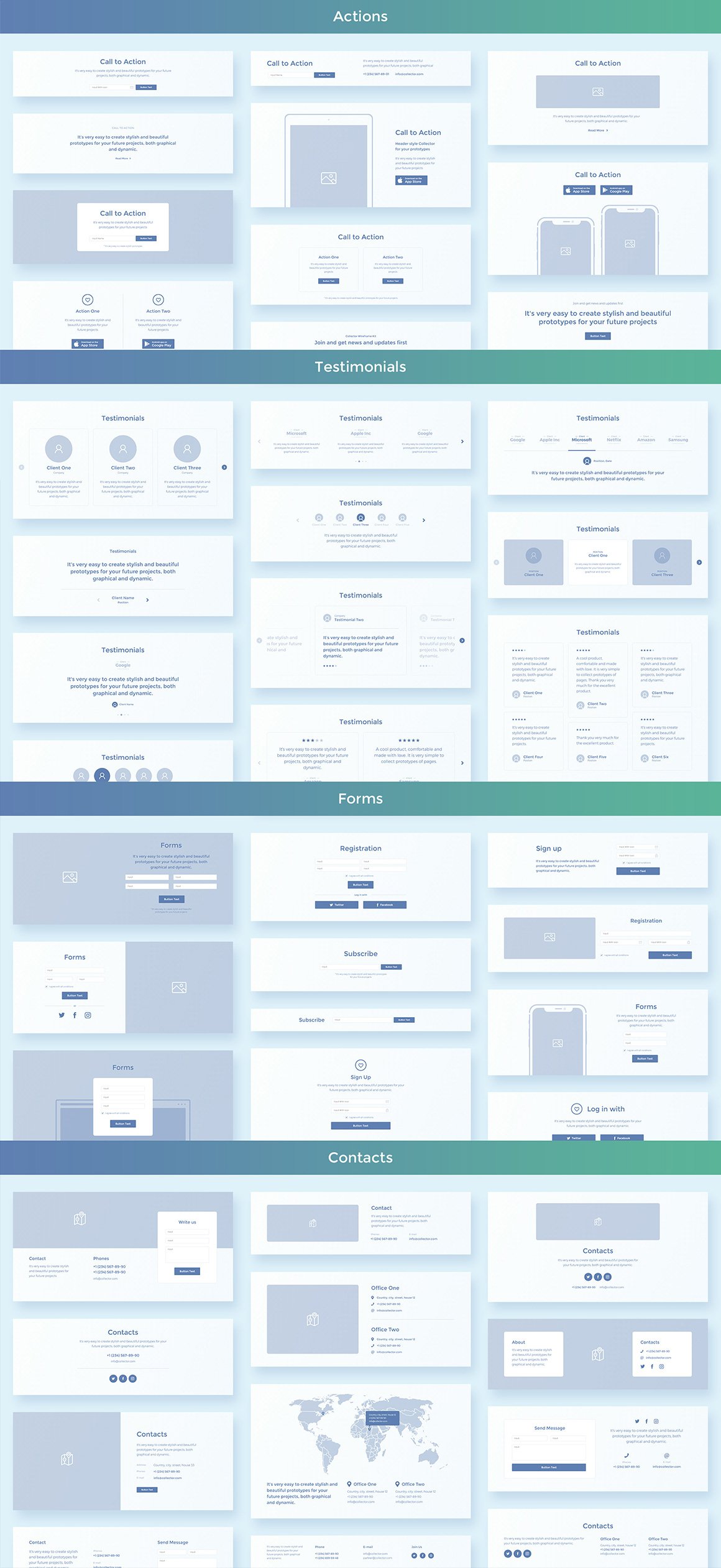 - 15 wireframe kits & web/mobile UI kits in 1 pack
