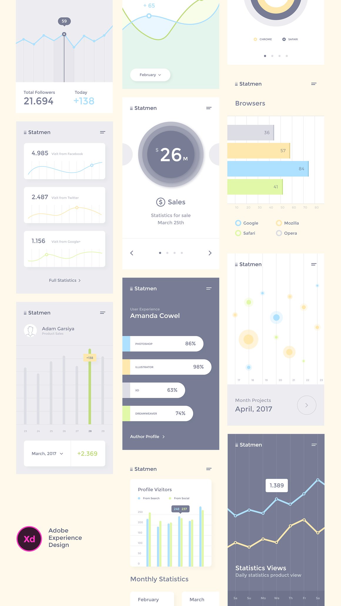 - Kits compatible with Figma, Adobe XD, Adobe Photoshop