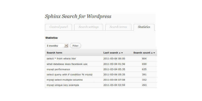 WordPress Sphinx Search Plugin enables ultra-fast and feature-rich search on WordPress-based websites. It is especially useful if your site becomes huge. Search results are more relevant and you can search in posts, pages and comments using flexible search syntax, quickly sort the results by freshness, relevance or in both modes. This plugin comes with sidebar widgets to display the most recent searches, top and related search terms.