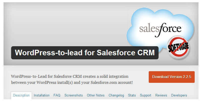 This CRM creates a solid integration between your WordPress install(s) and your Salesforce CRM account. People can enter a contact form on your site, and the lead goes straight into Salesforce CRM, avoiding you copy pasting lead info, and missing leads.