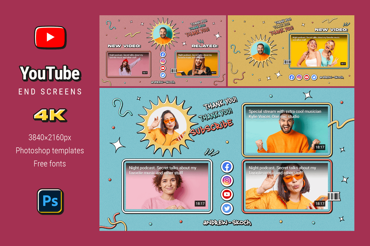 The package contains over 180 use-ready templates and stylized assets in PSD format that you can use with Adobe Photoshop, layered and organized, with a distinctive Y2K and late 90s aesthetic: vibrant color palettes, 3D sans-serif lettering, colorful doodle shapes, and more. Every PSD template has organized layer structures so it’s easy to work with them, and they are fully editable so you can customize the colors, shapes, lettering, add/remove elements, etc.